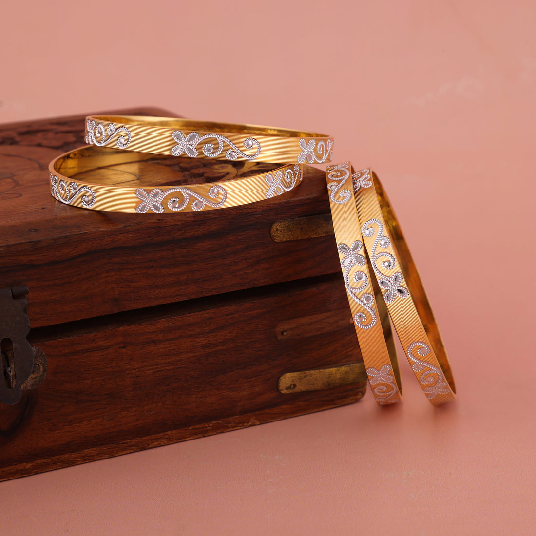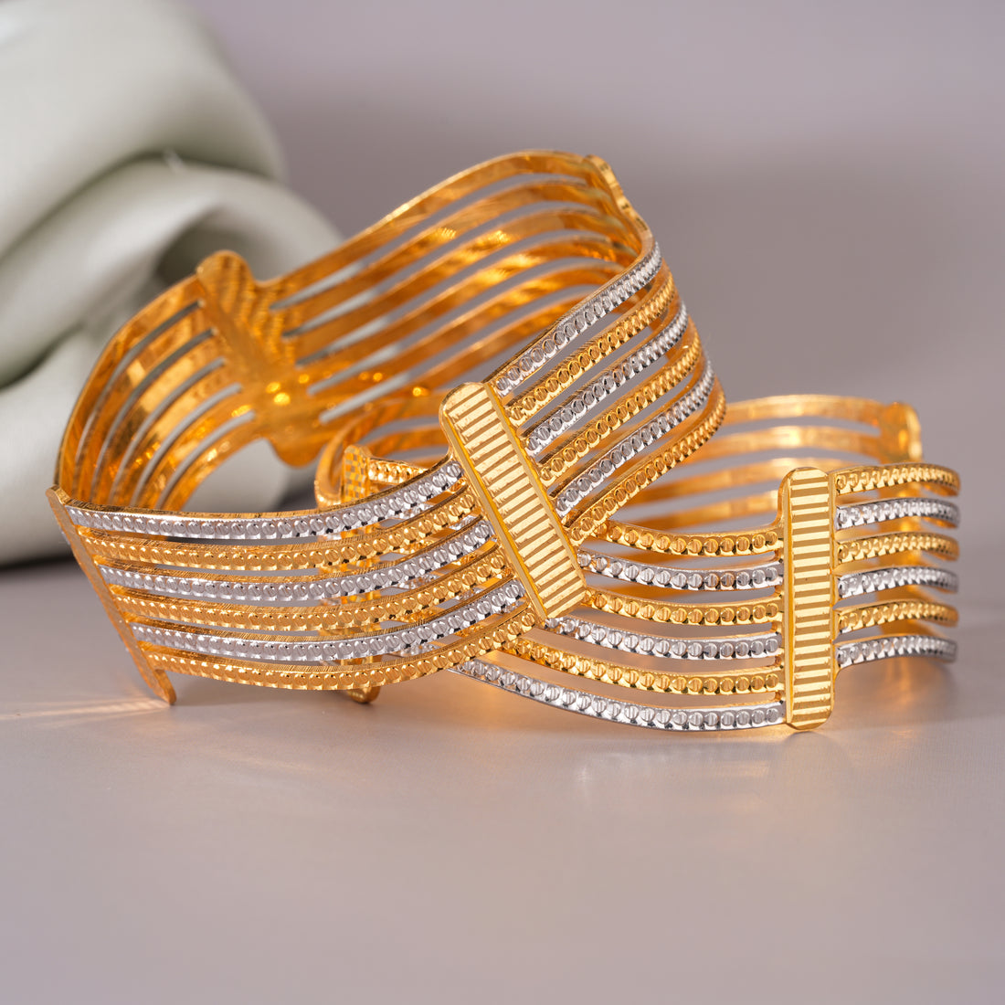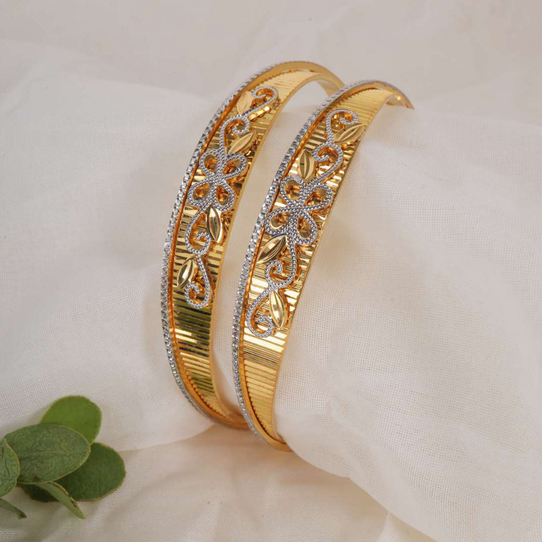 Product Details Set of two gold-plated & silver-toned traditional bangles, each has white artificial stone-studded...
