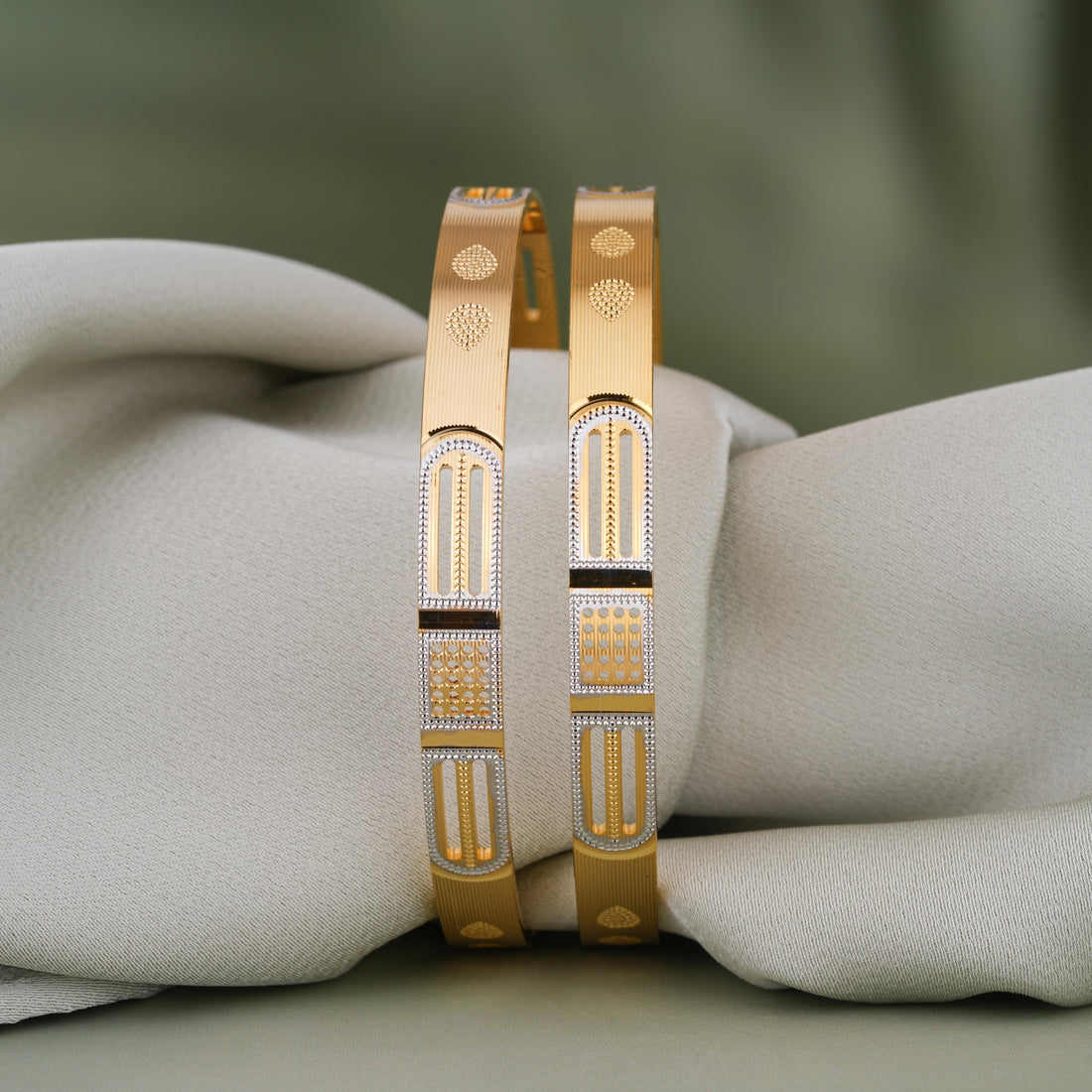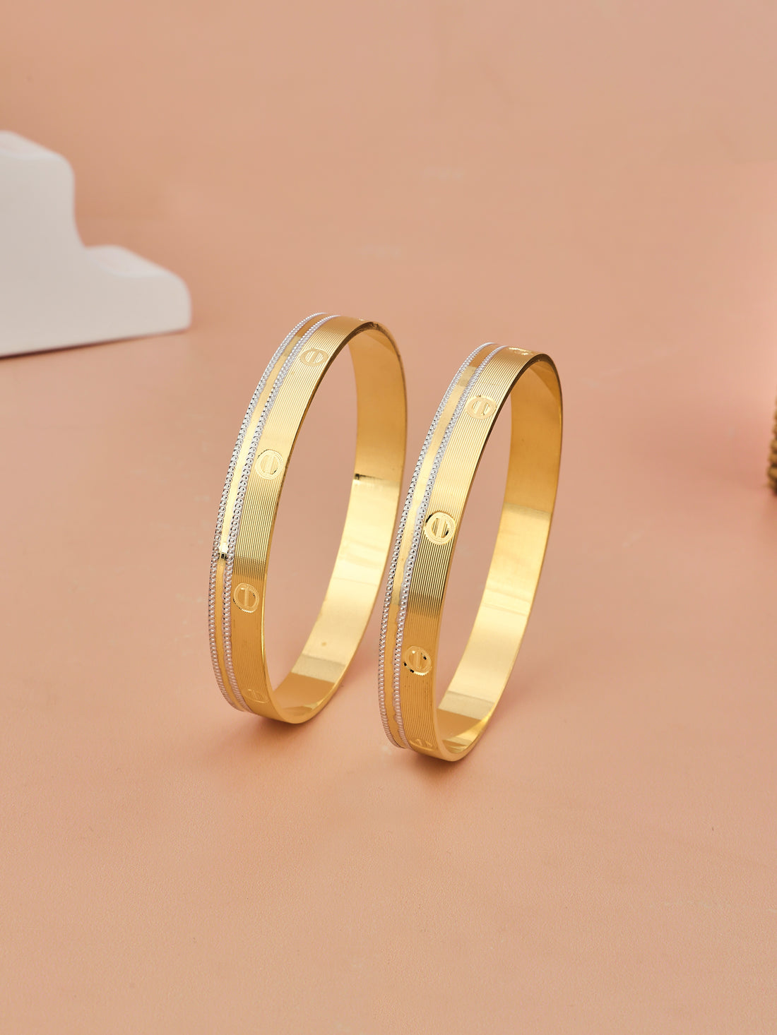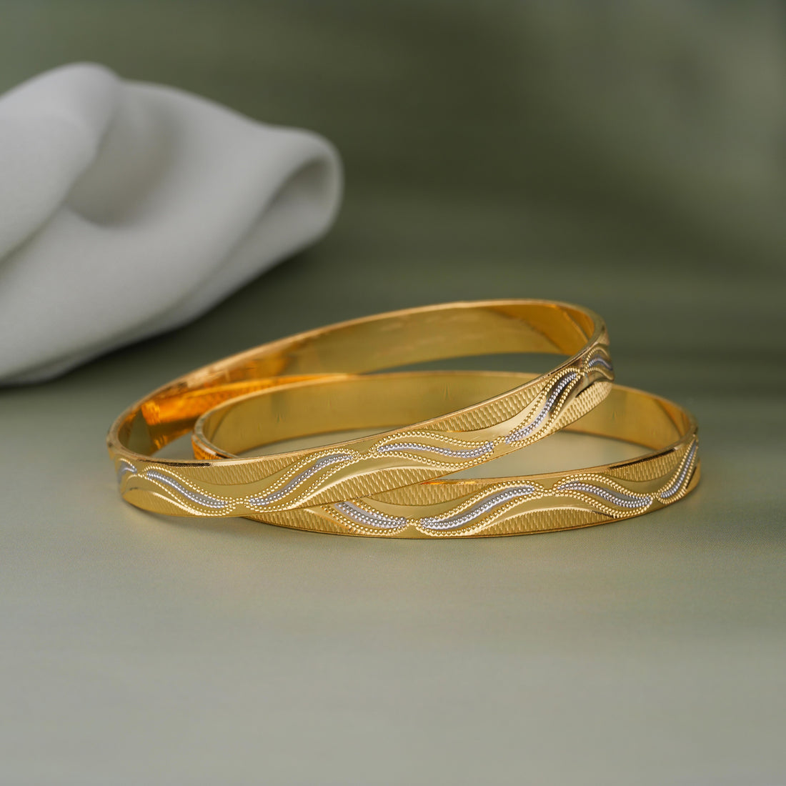 Set of Two 24 Carat gold-plated handcrafted bangles, each has an intricate textured pattern, slip-on...
