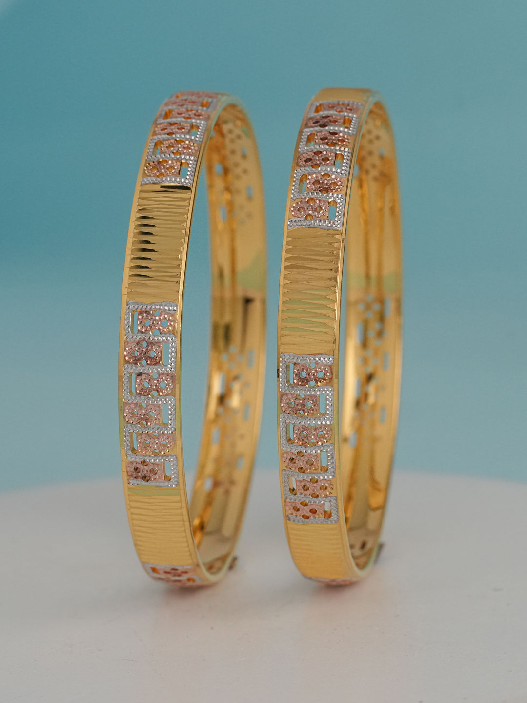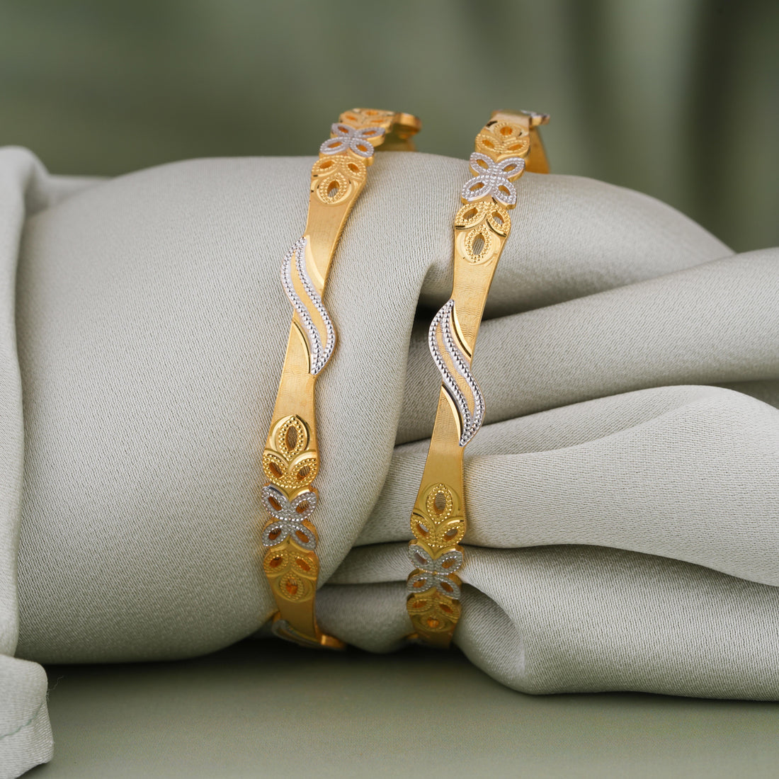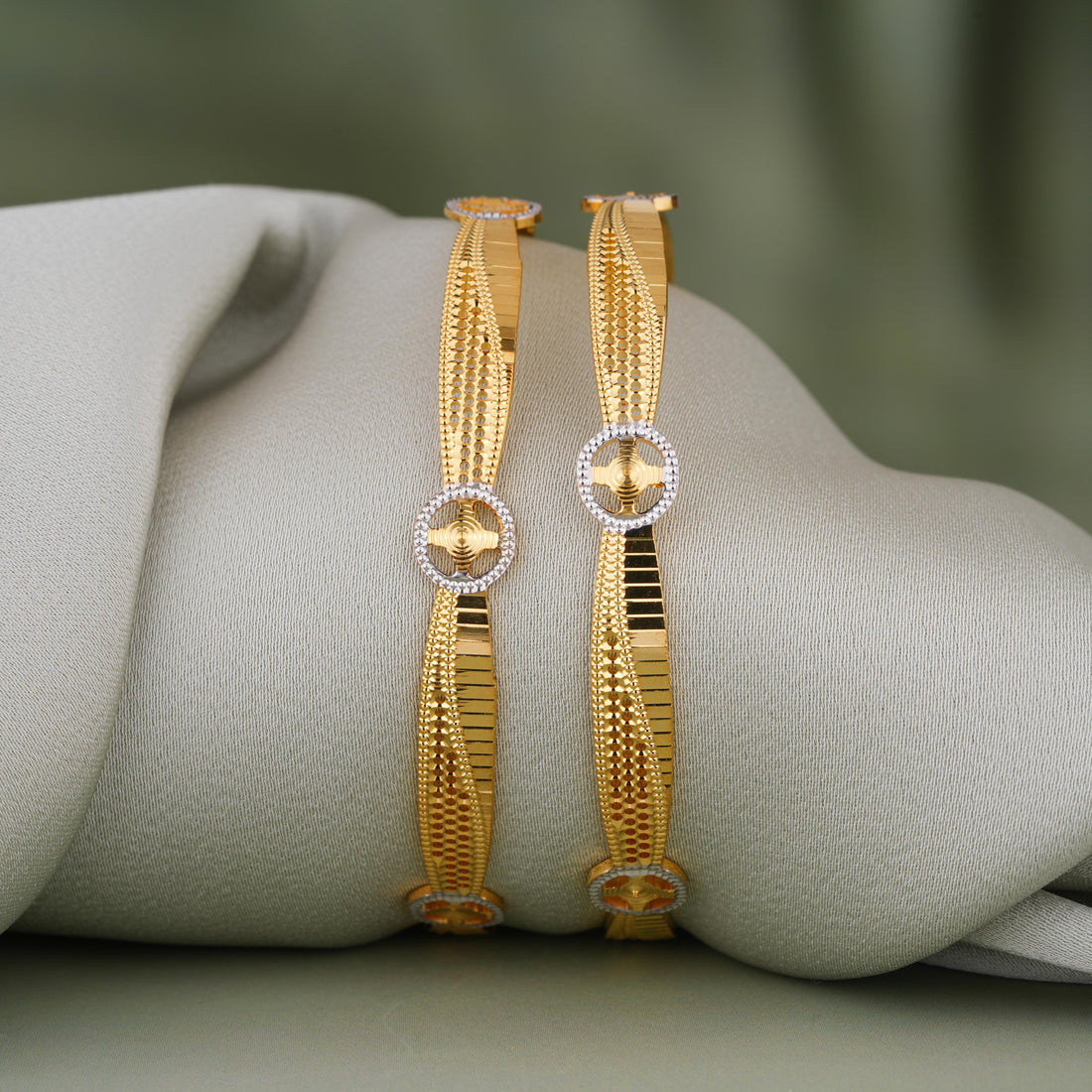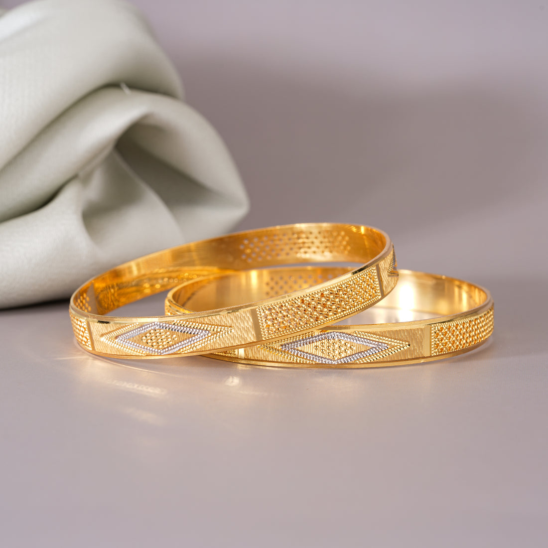 Set of Two 24 Carat gold-plated handcrafted bangles, each has an intricate textured pattern, slip-on...