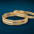 Perfect for daily wear or special moments, this set of two gold-plated bangles features a subtle yet intricate textured design that complements any outfit. Crafted from brass with elegant 24-carat gold plating, these bangles offer lasting shine and comfort. The easy slip-on closure makes them a go-to accessory for effortless elegance.
