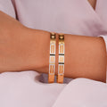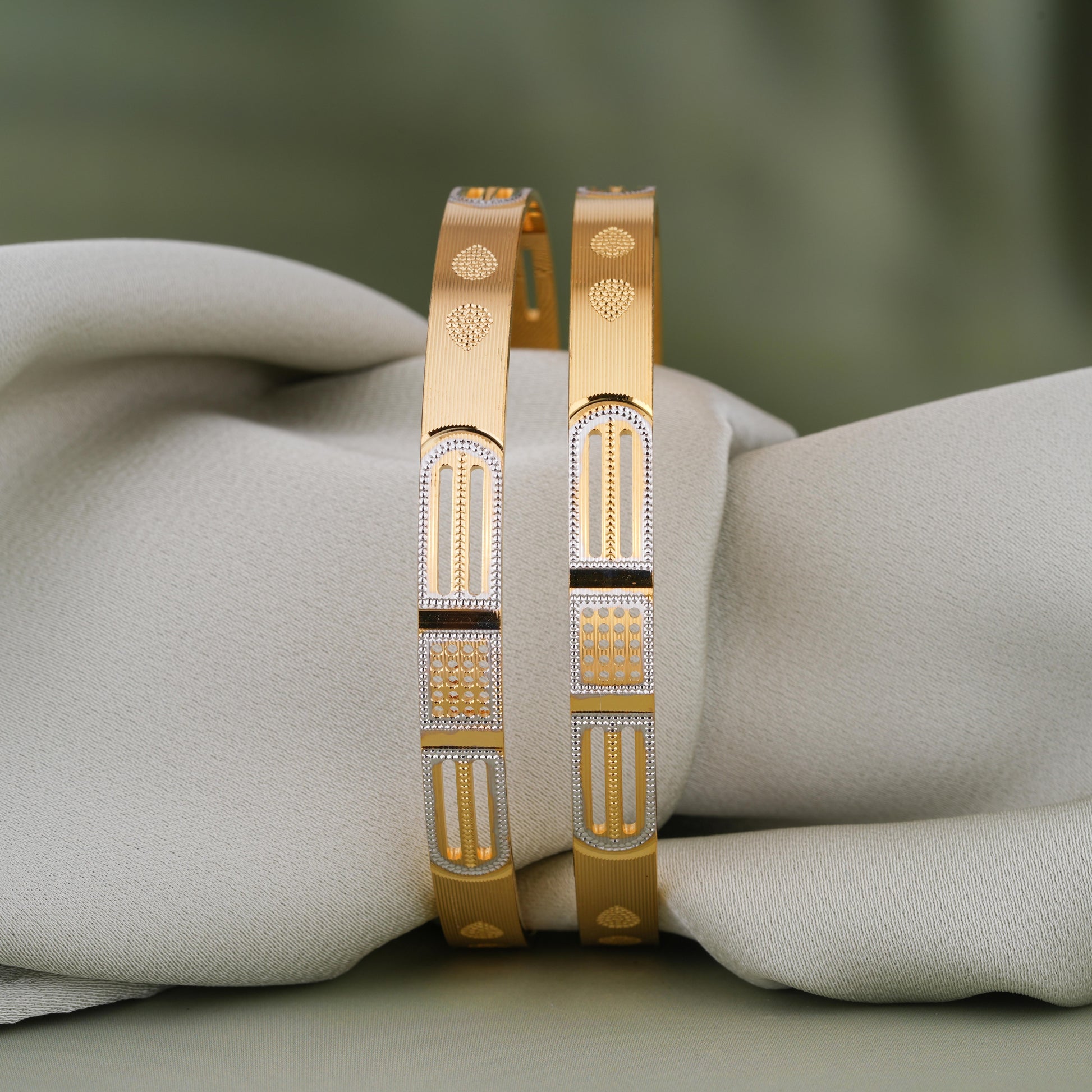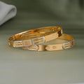 Perfect for daily wear or special moments, this set of two gold-plated bangles features a subtle yet intricate textured design that complements any outfit. Crafted from brass with elegant 24-carat gold plating, these bangles offer lasting shine and comfort. The easy slip-on closure makes them a go-to accessory for effortless elegance.